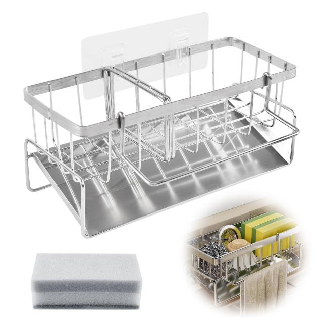 スポンジホルダー 壁掛け スポンジラック 可動仕切り板付き ステンレス製 防錆 スポンジ置き キッチン用 スポンジ洗剤置き スポンジ/ふき