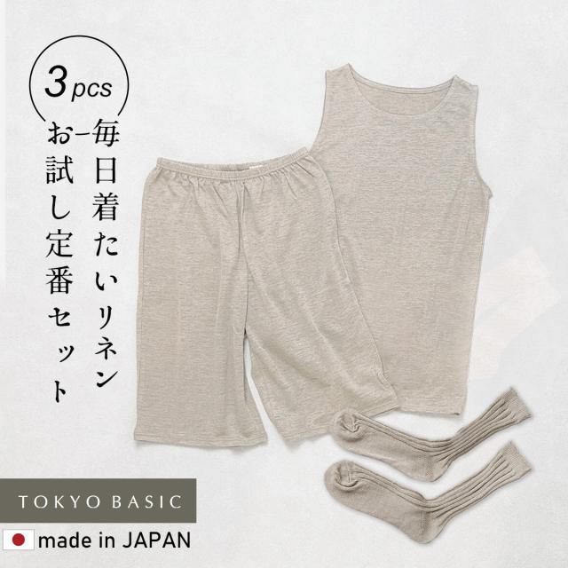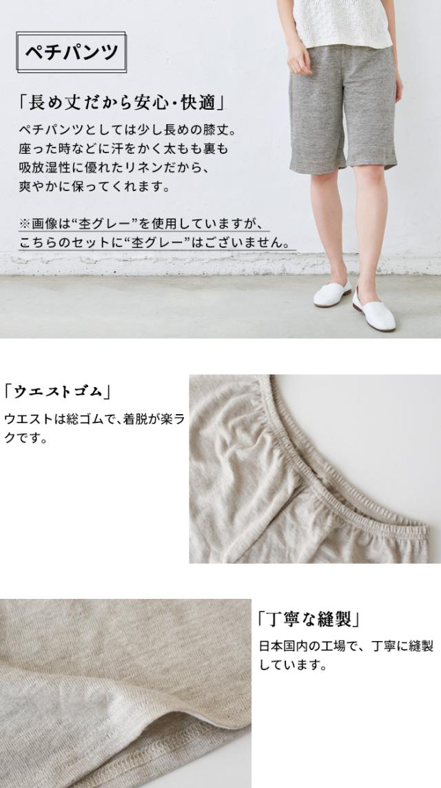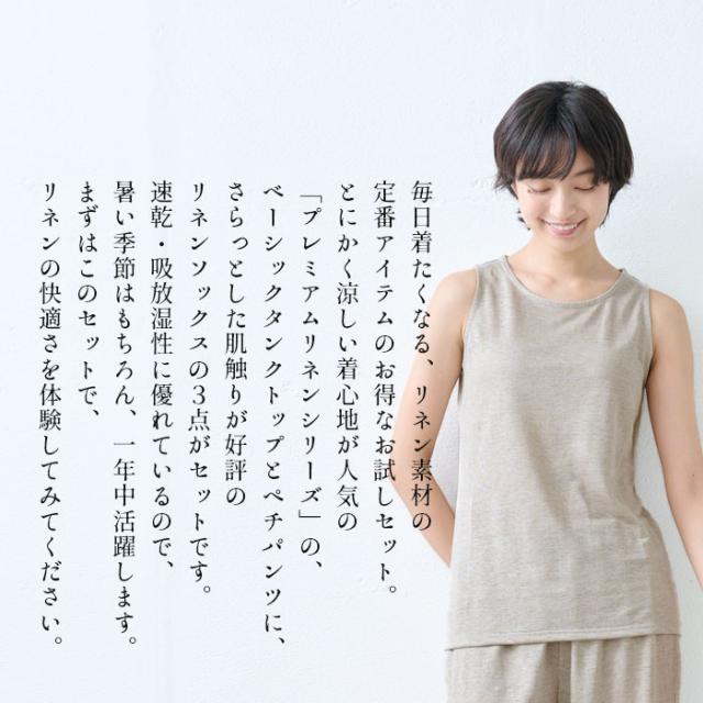 プレミアムリネン100% ベーシックタンクトップ + ペチパンツ & リネンソックス 3点セット / お試し セット レディース リネン 夏 インナー 日本製 40代 50代 夏用 タンクトップ ペチパンツ 汗取り 靴下 透け防止 涼しい 吸水 速乾 ルームウェア 部屋着