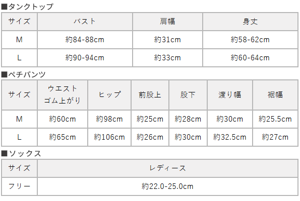 サイズ タンクトップ・ペチパンツ/M・L、ソックス/フリー