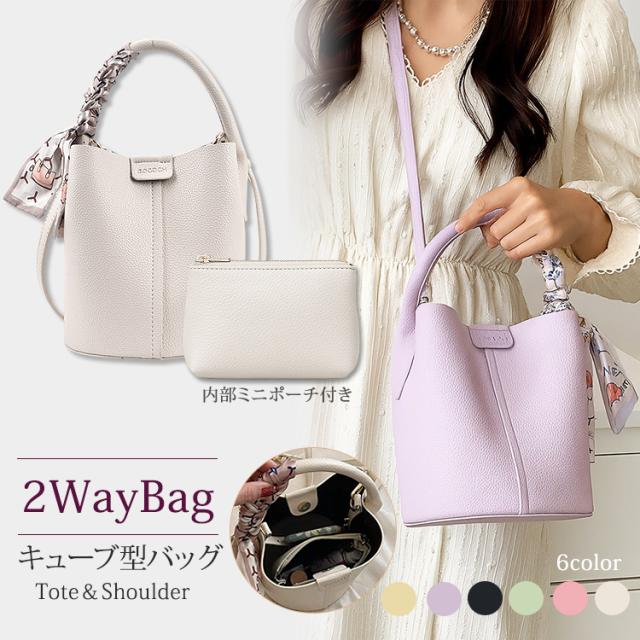 レディースバッグ トートバッグ 2Wayバッグ ショルダーバッグ スカーフ付き ハンドバッグ 小さめキューブ型バッグ レザー 通勤バッグ お仕事バッグ 通学 肩掛け 【海外中国配送】