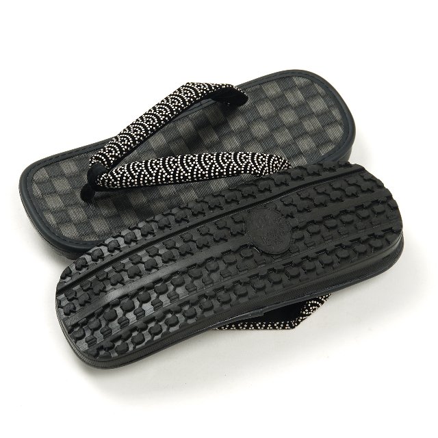 底はラジアルタイヤパターンのゴム底になっておりますので滑りにくい構造です安全のため、雪駄の裏は滑りにくいゴム底仕様で