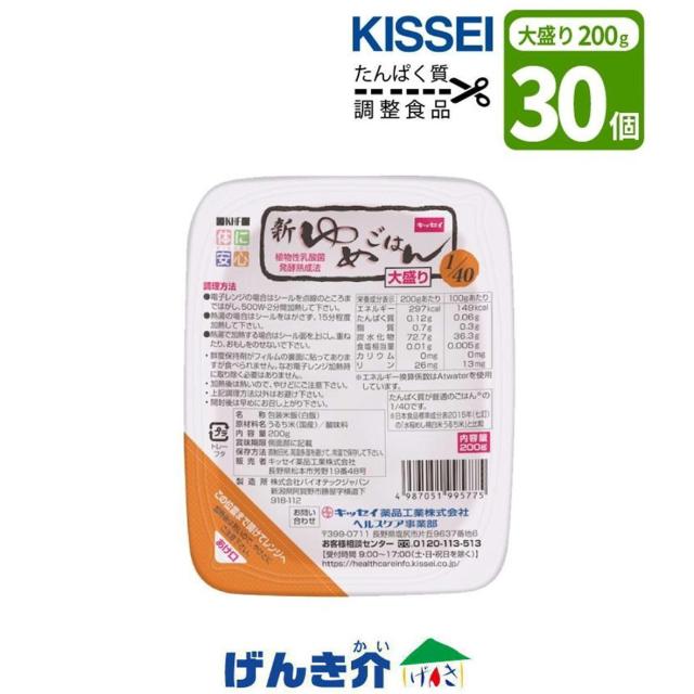 たんぱく質調整 新ゆめごはん1/40 200g×30個 大盛り キッセイ薬品 たんぱく質調整 電子レンジ 簡単 長持ち 常温保存食品 夢ごはん 介護食 K