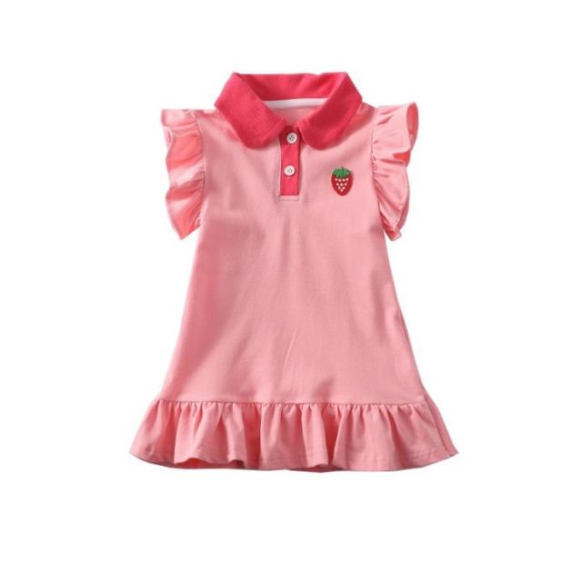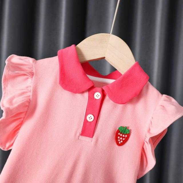 女の子 キッズ服 子供服 韓国風 ワンピース ピンク フリル袖 いちご柄 お出掛け 夏新作 可愛い 新品 1-6歳