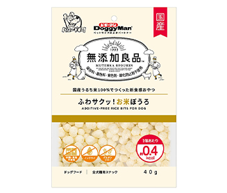 ・国産うるち米100%でつくった、ふわサクッの新食感。 ・調味料や添加物不使用、さらにノンフライのからだにやさしい味わいです。 ・大切な家族だから“気になる添加物”は使わない、加えない。それがドギーマンの《無添加良品》シリーズです。 ・生後2ヶ月以上の愛犬に。 4976555824056