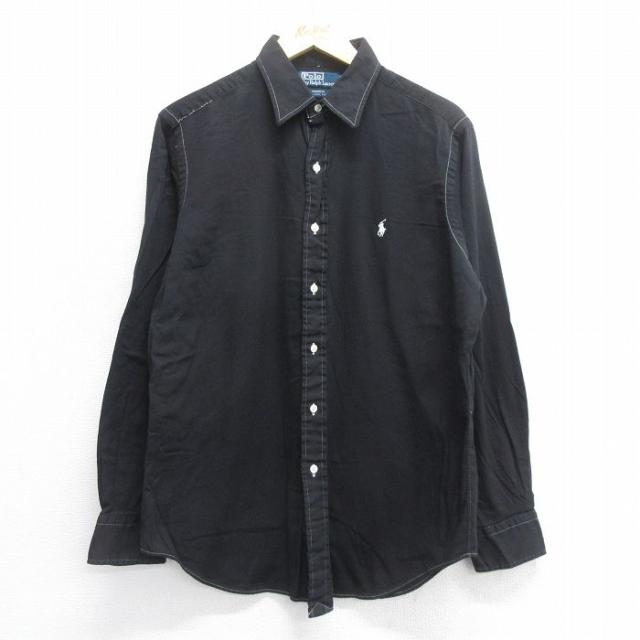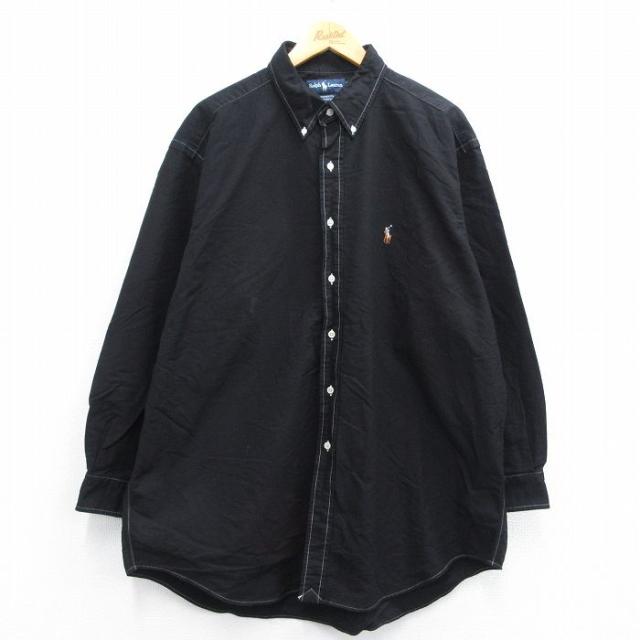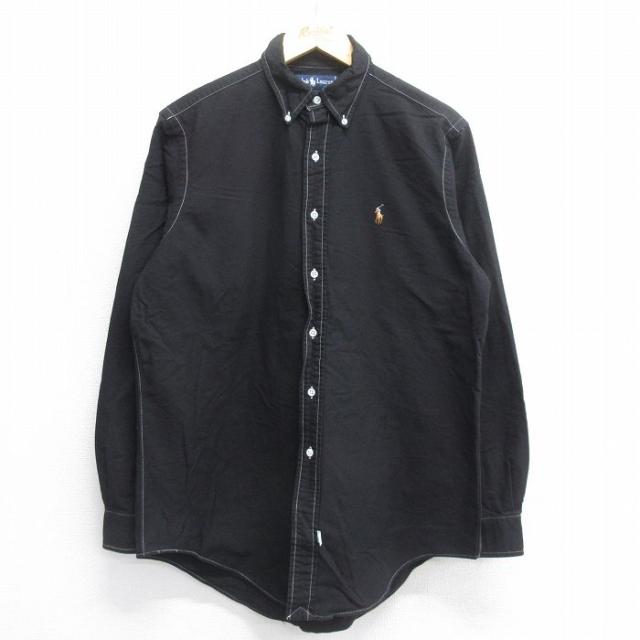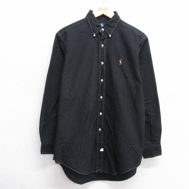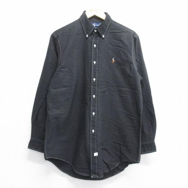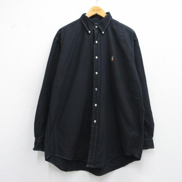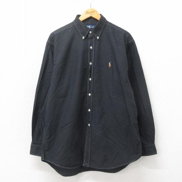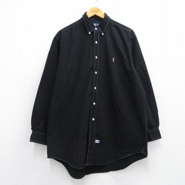 【商品名】 L★古着 ラルフローレン 長袖 ブランド シャツ メンズ 90年代 90s ワンポイントロゴ オックスフォード ロング丈 コットン ボタンダウン 黒