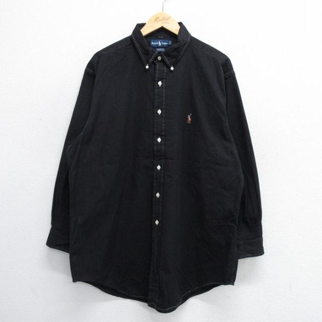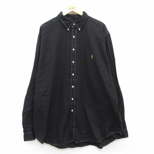 【商品名】 XL★古着 ラルフローレン 長袖 ブランド シャツ メンズ 90年代 90s ワンポイントロゴ オックスフォード ロング丈 コットン ボタンダウン 黒
