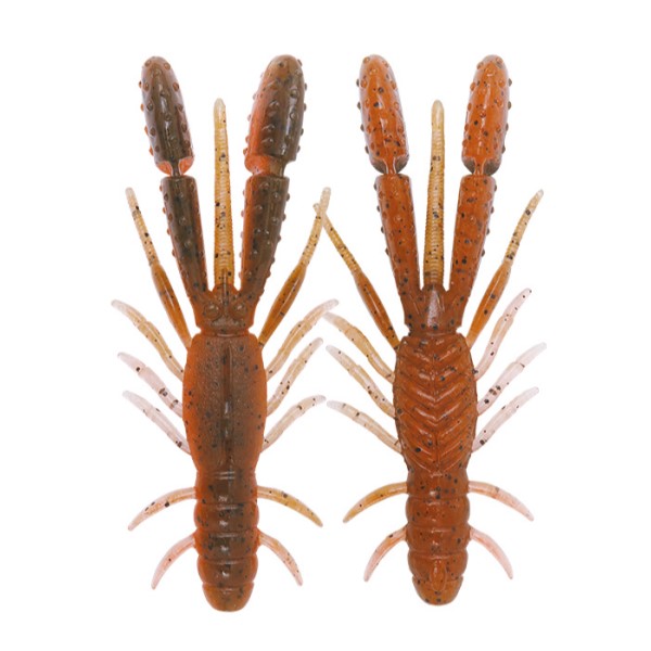 独自のスリットインパドルが水をつかみ、左右にブルブルと震えるライブリーアクションを発生。分厚いパドルの側面で水を叩く水押し効果と相まって、バスの捕食本能を強く刺激します。ベイビーはスリットを湾曲&幅も広げることで可動域を増やし、小型化による水受けの不利を克服しました。 フラットタイプのピンテールは着底後、パドルが倒れ込んだ後に左右にピリピリと震え、時間差による自発的アクションでポーズ中のバイトを促します。レッグはフォールスピードにブレーキをかけつつハイピッチにバイブレーションし、サスペンドバスのバイトを促します。尻尾部は針持ちに有利な円形肉厚に。微かなロッドワークでもナチュラルに動く、柔らかめのマテリアル。塩の含有量は、ダウンショットでの水平姿勢を適えつつも適度に水を押す低中比重。 背と腹に比重差を設けることで、キャロライナリグでも回転することなく安定した姿勢で泳ぎます。エビ・イカ・ベイトフィッシュの粉末をトリプル配合。