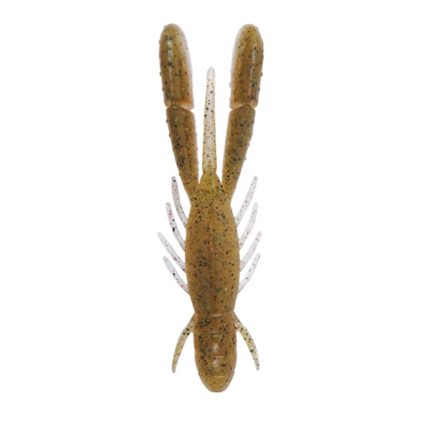 独自のスリットインパドルが水をつかみ、左右にブルブルと震えるライブリーアクションを発生。ウチワであおぐような強い水押し波動と相まって、バスの本能を強烈に刺激します。またシェイクなどのロッドワークでもしなやかにスイングし、ホッグ系特有のタテ方向の水押しでアピール。上下左右の異なる刺激でバイトを頻発させます。フラットタイプのピンテールは着底後、パドルが倒れ込んだ後に左右にピリピリと震え、時間差による自発的アクションでポーズ中のバイトを促します。4対のレッグは僅かなロッドワークでもレスポンスよく反応し、ワーム全体の波動を複雑にすることでバスに見切らせにくくする役割を担っています。レッグとは逆向きに設けた1対の逆手は、フォールスピードにブレーキをかけつつハイピッチにバイブレーションし、サスペンドバスのバイトを促します。強い水押しと針もちに優れるやや硬めのマテリアルながら、それを感じさせない柔らかな動きをデザインで実現。比重は、自然な水中姿勢と強い水押しを兼備する塩の含有量を吟味。エビ・イカ・ベイトフィッシュの粉末をトリプル配合。