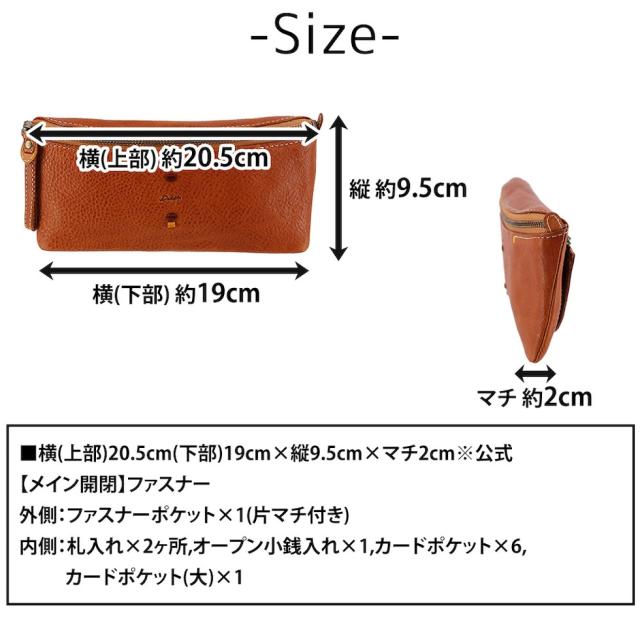 | サイズ(約) ※当店実寸値 | 公式サイズ 横(上部)20.5cm(下部)19cm×縦9.5cm×マチ2cm | ||