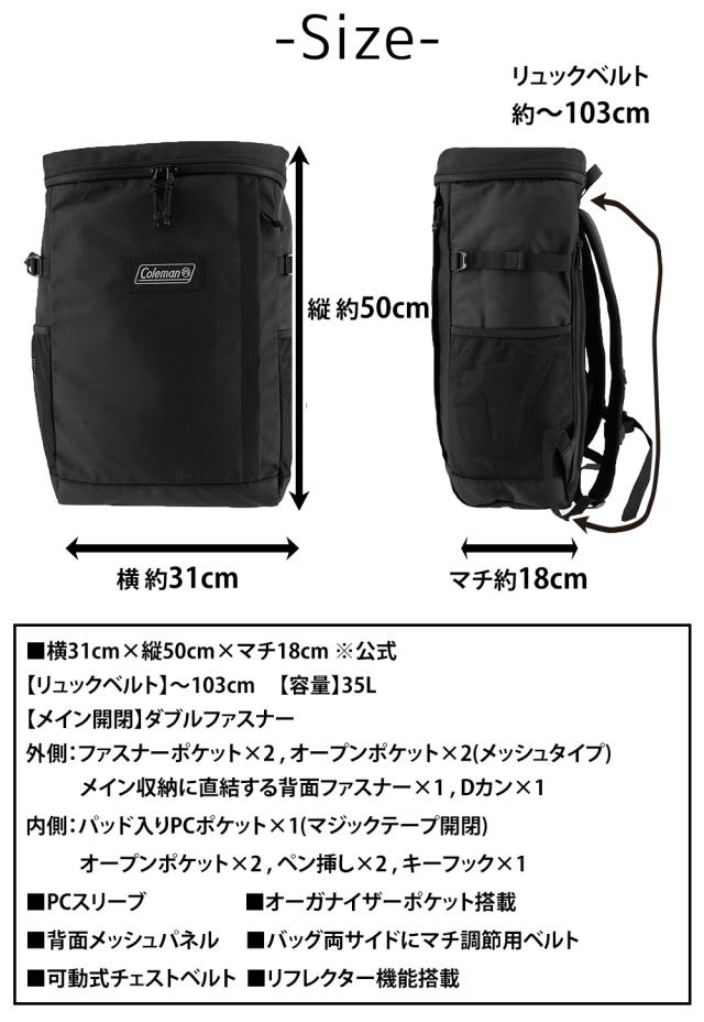 コールマン バッグ リュックサック スクエア バックパック デイパック Coleman シールドライト35 35L B4 A4 B5 メンズ レディース キッズ ポイント10倍 送料無料 誕生日プレゼント ギフト ラッピング無料 【正規代理店】