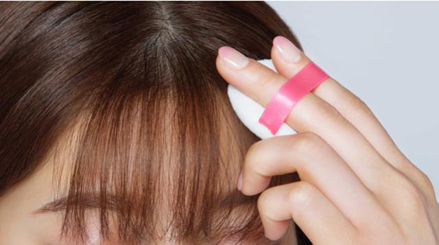 ・前髪に使用する場合はパフではさみ、すべらせるように塗布します。