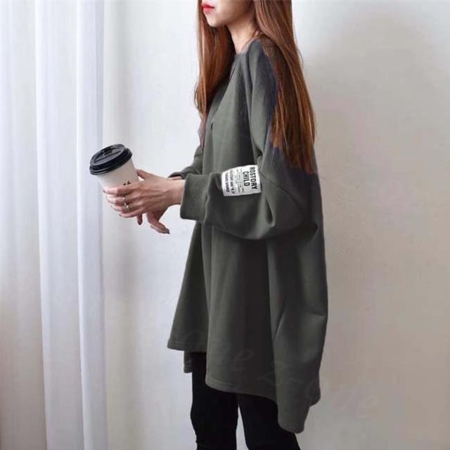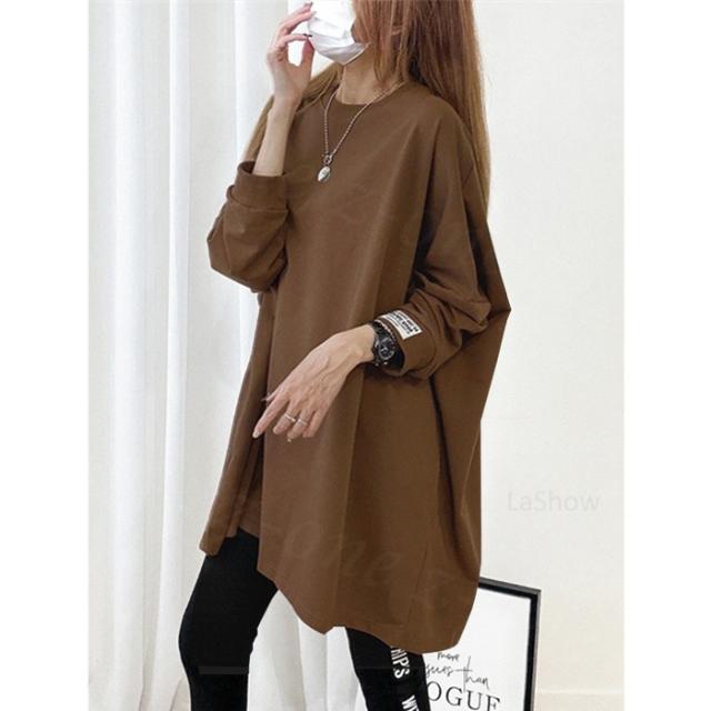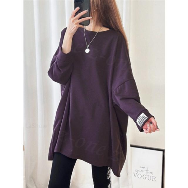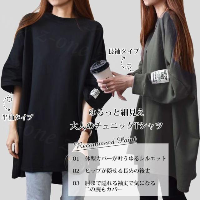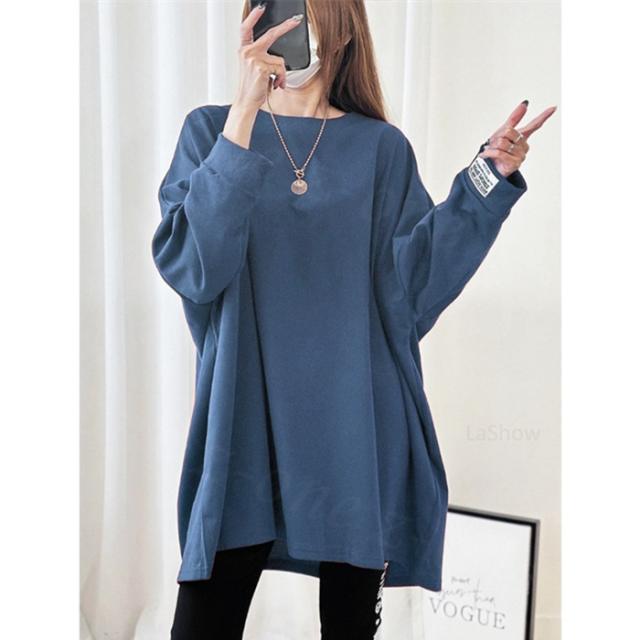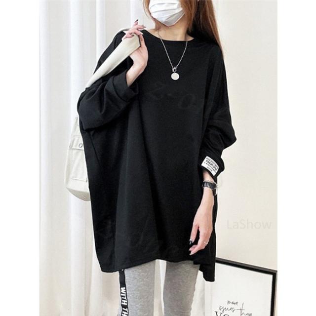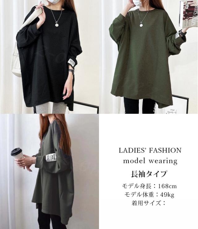 【1,690円!クーポン利用で】長袖Tシャツ 新作 秋冬 チュニックTシャツ ロングTシャツ 綿100% しっかり素材 送料無料 ロゴ コットン100% シンプル ドルマンスリーブ 体型カバー可愛い 韓国風 無地 肌触りいい トップス カットソー カジュアル ゆったり 吸汗 春秋