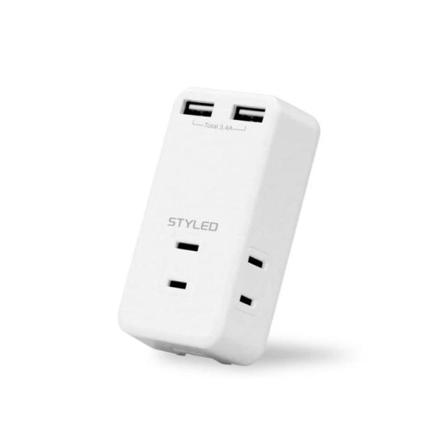 USBは合計出力3.4A。スマホ、タブレットなど接続機器に適した最適電流で充電する自動識別ICを搭載。 プラグは持ち運びに便利な折りたたみ式プラグで、トラッキング火災防止に有効な絶縁キャップ付きです。