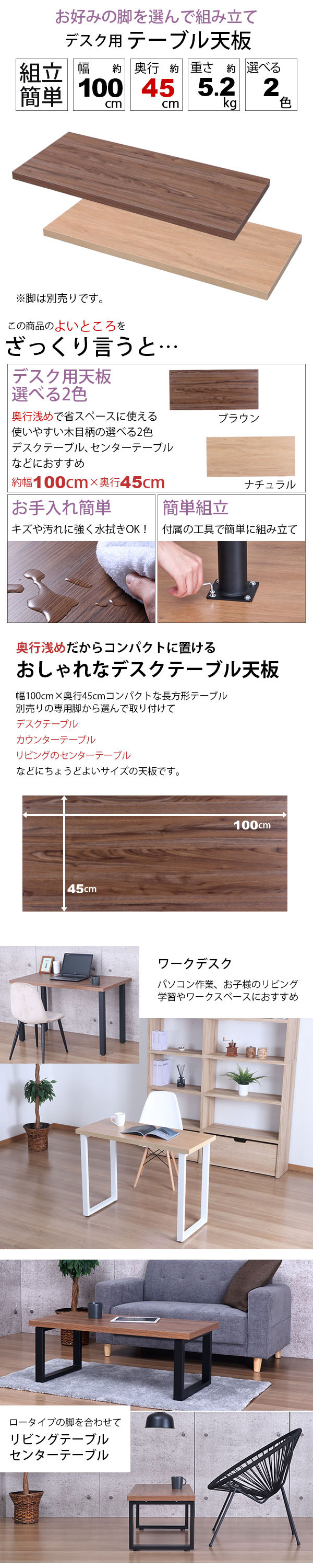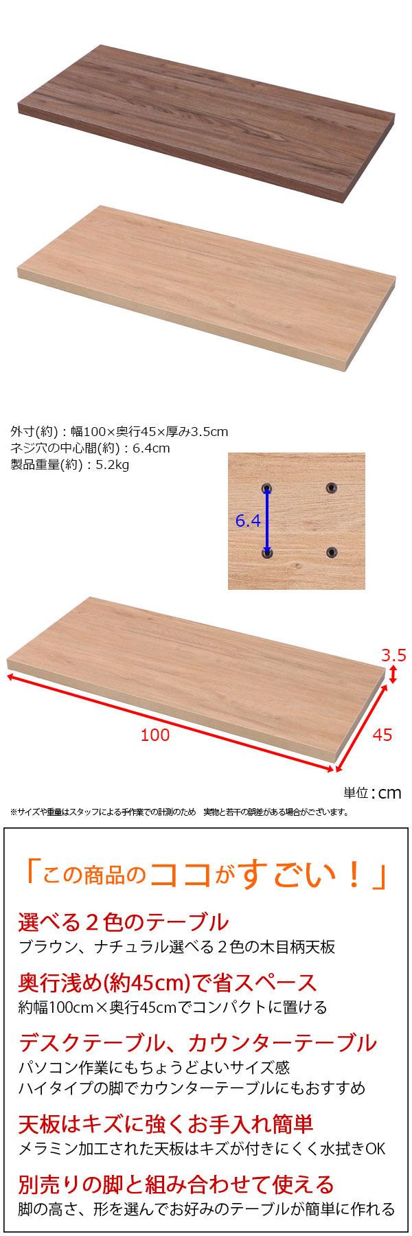 テーブル 天板 DIY 100×45 机 天板 デスク テーブル天板 天板のみ デスク おしゃれ カフェ風 テーブル スリム 一人用 2人用 幅100cm 奥行45cm カフェテーブル カウンターテーブル パソコンデスク テーブル 奥行 狭い 木製 付け替え 取り替え リメイク ブラウン ナチュラル