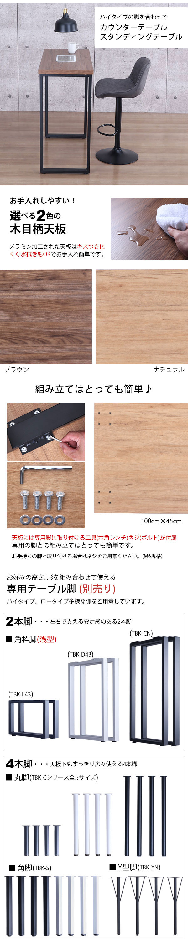 お好みの脚を選んで組み立て