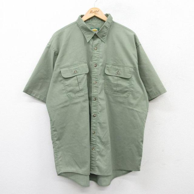 古着 カベラス 半袖 シャツ メンズ 00年代 00s 大きいサイズ ロング丈 濃緑 グリーン XLサイズ 中古 トップス 中古 古着