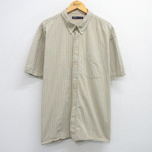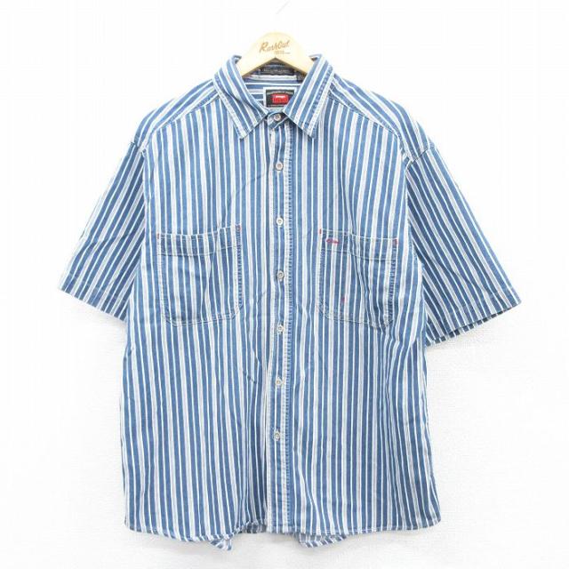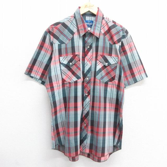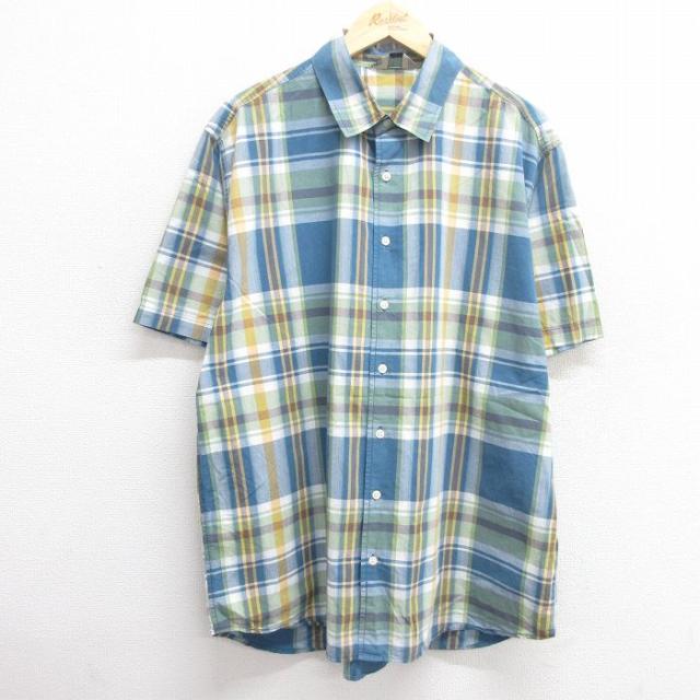 古着 ラングラー Wrangler 半袖 シャツ メンズ 大きいサイズ コットン 薄紺他 ネイビー チェック XLサイズ 中古 トップス 中古 古着