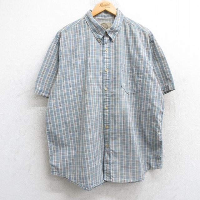 【商品名】 XL★古着 ラングラー 半袖 シャツ メンズ 大きいサイズ コットン 薄紺他 チェック