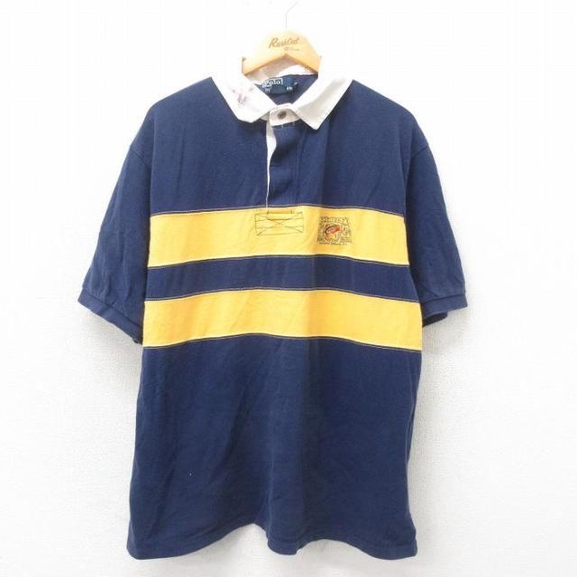 【商品名】 XL★古着 エディーバウアー 半袖 ラガー シャツ メンズ 00年代 00s 襟デニム 鹿の子 大きいサイズ コットン 薄黄他 ボーダー【spe】