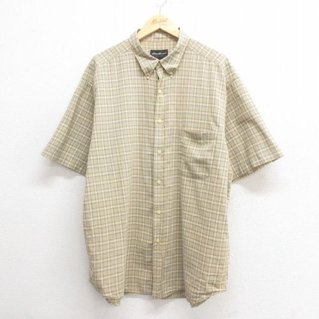 古着 エディーバウアー 半袖 ラガー シャツ メンズ 00年代 00s 襟デニム 鹿の子 大きいサイズ コットン 薄黄他 イエロー ボー 中古 古着