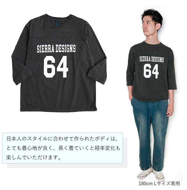 SIERRA DESIGNS グッドオン×シエラデザインズ 64 Tシャツ 半袖 ユニセックス メンズ レディース コラボ クルーネック 丸胴 丈夫 7分袖 薄手 綿 1523 日本製 つなぎ目 ティー ブラック ホワイト ナチュラル グリーン ゴルフ スポーツ アメカジ