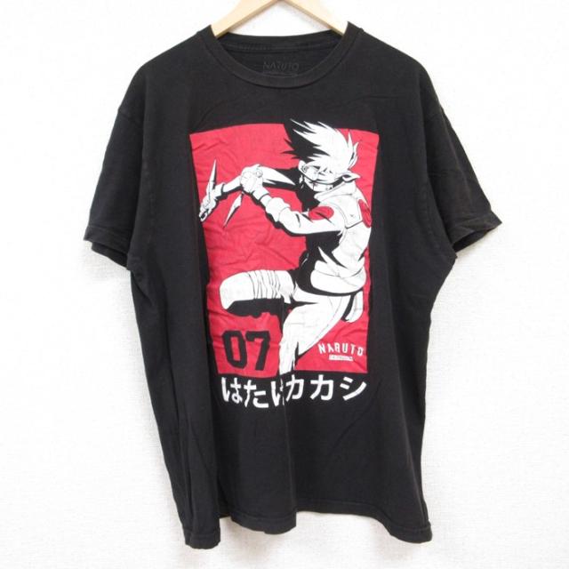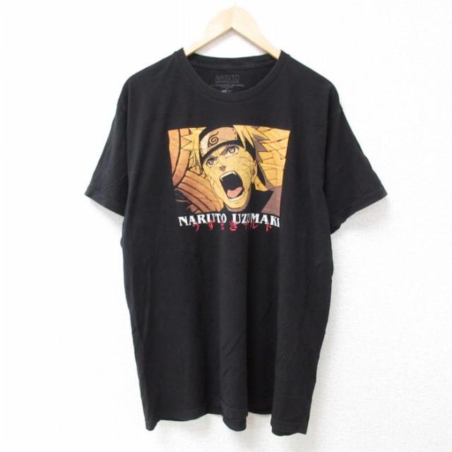 古着 半袖 Tシャツ メンズ アニメ ナルト疾風伝 一楽 コットン クルーネック 黒 ブラック XLサイズ 中古 中古 古着