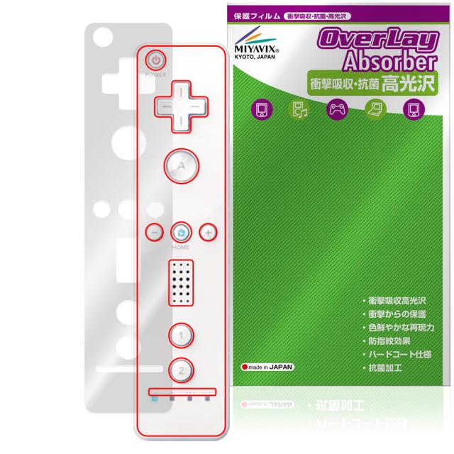 ニンテンドー Wii リモコン 保護 フィルム OverLay Absorber 高光沢 for 任天堂 コントローラー 衝撃吸収 高光沢 ハードコート 抗菌