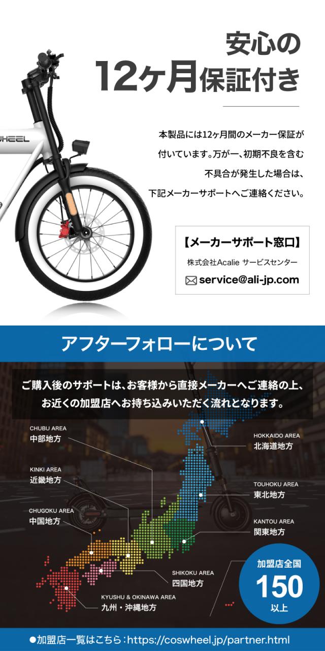 ※ブレーキ、タイヤ等の消耗品は保証対象外です。パーツの保証あり(送料と工賃はお客様ご負担)