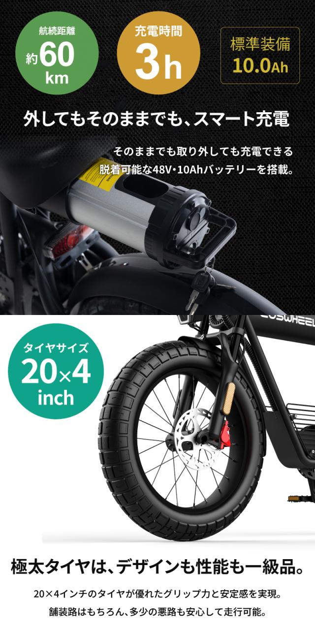 最長航続距離 10Ahバッテリー:約60km
