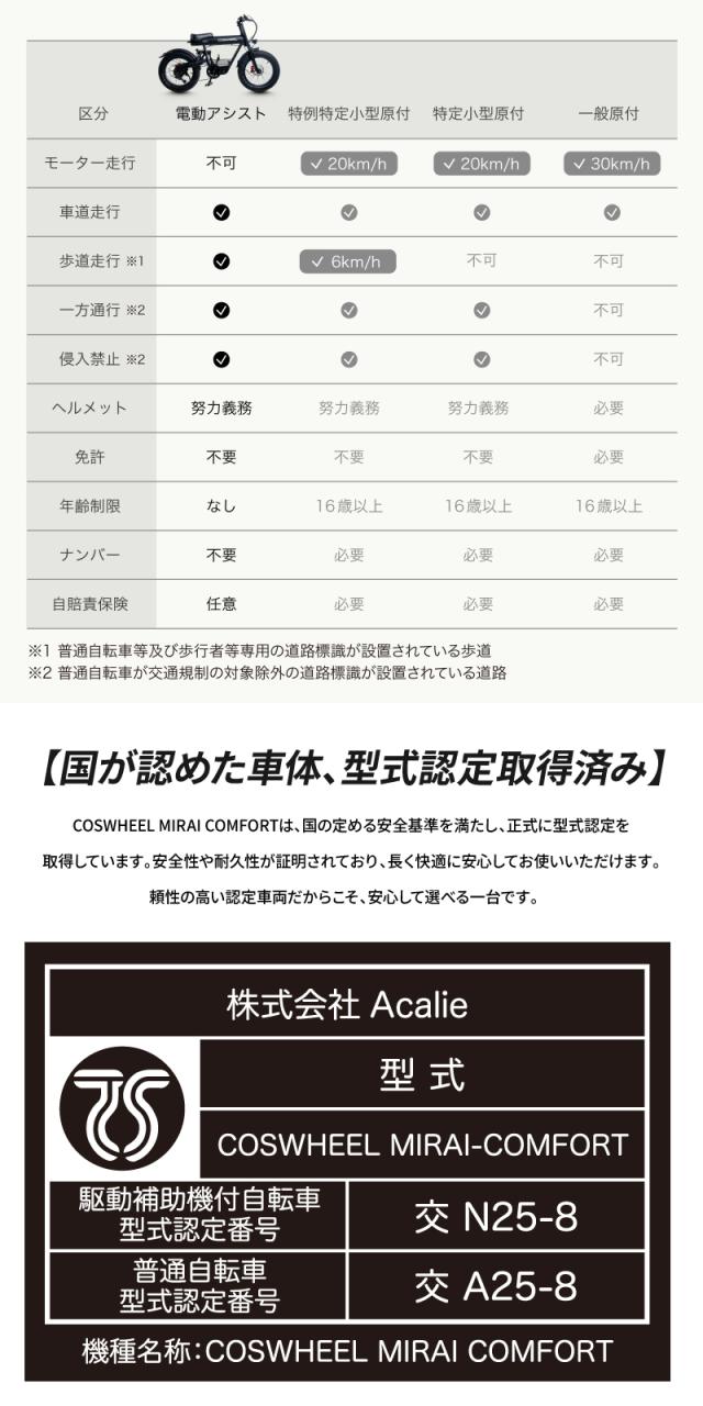 MODEL COSWHEEL MIRAI COMFORT 電動アシスト自転車 e-bike マットブラックスカイグレーピュアホワイト