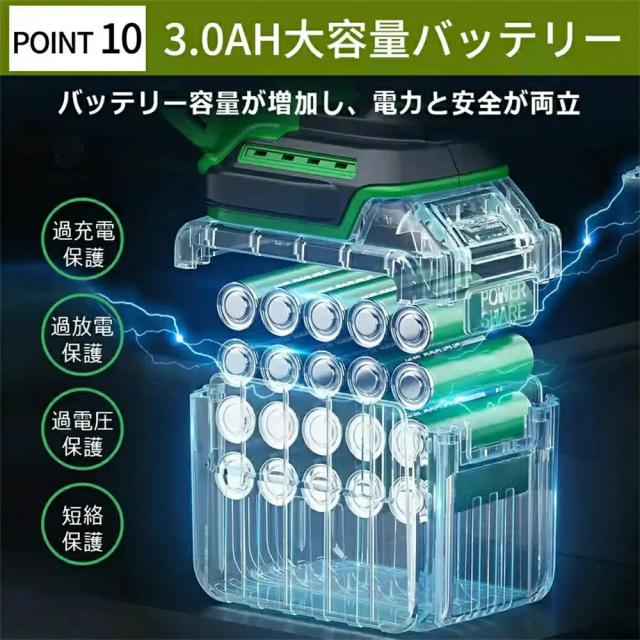 草刈り機は、21V 2100Wの高性能モーターを搭載しています。内部には太い銅線を巻き付けることで、強力なパワーと長寿命を実現しています。弊社の草刈り機は、40000回転/分の高速回転を実現しています。稼働中の騒音が非常に低く、高い切断効率を実現し、草が絡まる心配がありません。改良された草刈り機の本体重量を4kg以内に抑えたことで、操作が軽くなり。さらに、長時間の使用でも安定したパフォーマンスを提供し、快適な草刈り体験をお届けします。