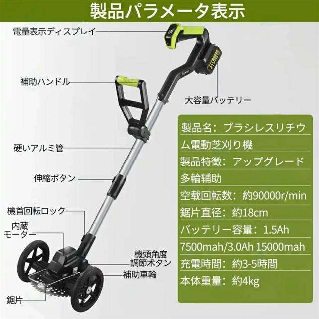 草刈り機 充電式 コードレス 電動草刈機 電動草刈り機 9インチ刈払機 ブラシレスモーター 21v バッテリー併用 芝刈り機 電動芝刈機 草刈機 ナイロンカッター 高性能 低騒音 軽量 伸縮可 角度調整可 雑草 植木 軽量 園芸機械 女性 枝切り 家庭用