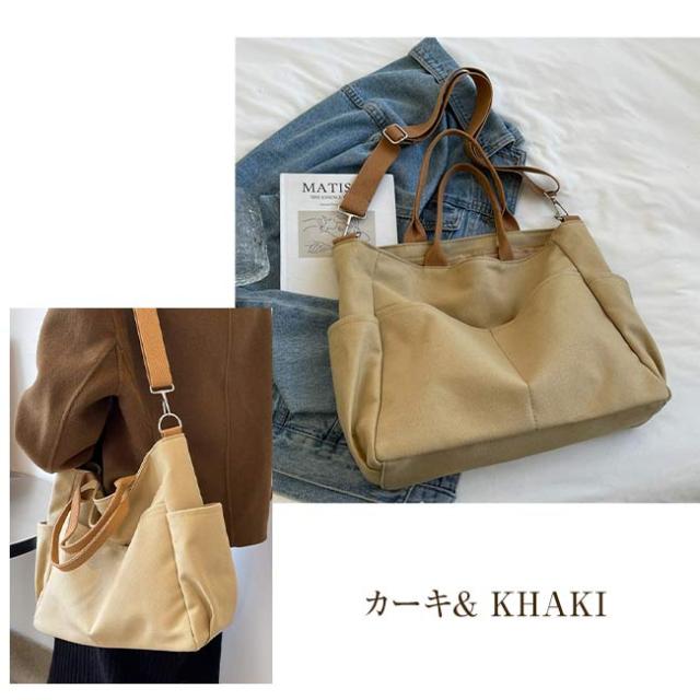 トートバッグ ショルダーバッグ 2way キャンバス レディース メンズ A4 7つボケット ファスナー付き 斜めがけ 肩掛け 大容量 軽量 鞄 無地 ファッション 通勤 通学