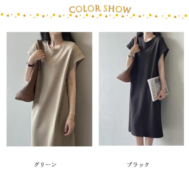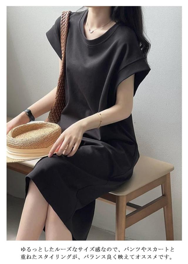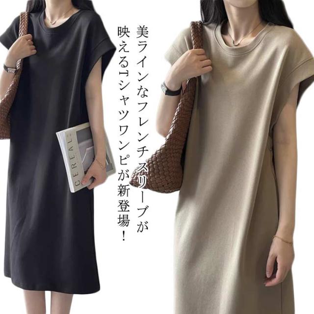 Tシャツワンピース フレンチスリーブ レディース 春 半袖 tシャツワンピ ロング丈 体型カバー 夏 Tシャツワンピース 秋 ゆったり 大きいサイズ カジュアル ワンピース ロングワンピ