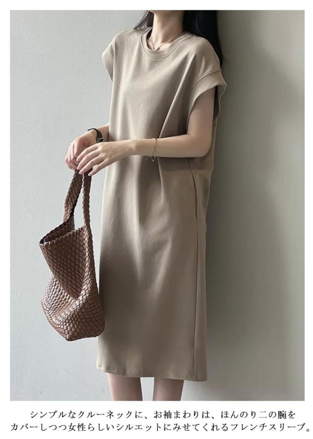 | 美ラインなフレンチスリーブが映えるTシャツワンピが新登場! シンプルなクルーネックに、お袖まわりは、ほんのり二の腕をカバーしつつ女性らしいシルエットにみせてくれるフレンチスリーブ。 ゆるっとしたルーズなサイズ感なので、パンツやスカートと重ねたスタイリングが、バランス良く映えてオススメです。 | |