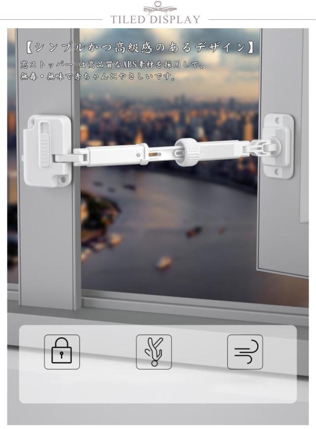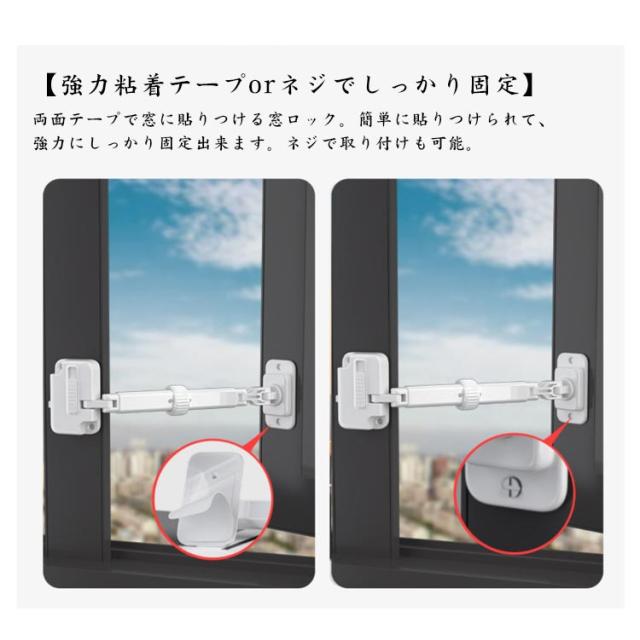 | 窓ストッパー 【2段階調整可能なロック】2段階ロックで、スイッチをスライドして簡単に開ける窓ロック。大人は開くのが簡単ですが、子供やペットが開くのは難しい。 【強力粘着テープorネジでしっかり固定】両面テープで窓に貼りつける窓ロック。簡単に貼りつけられて、強力にしっかり固定出来ます。ネジで取り付けも可能。 【お子様やペットの安全対策】窓ロック はお子様やご年配、犬や猫などのいたずら防止、転落防止、安全対策にオススメ。引き戸タイプの窓ガラスの内側に貼り付けるだけで2重ロックになります。 【施錠した状態での窓換気も可能】窓を開けた状態でもロックすることが出来ます。窓を開けての換気が出来ない場合などに役立つ窓ストッパーです。 【シンプルかつ高級感のあるデザイン】窓ストッパー は高品質なABS素材を採用して、無毒・無味で赤ちゃんにやさしいです。 | |