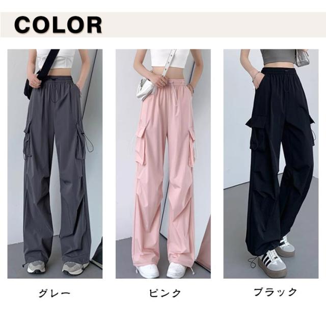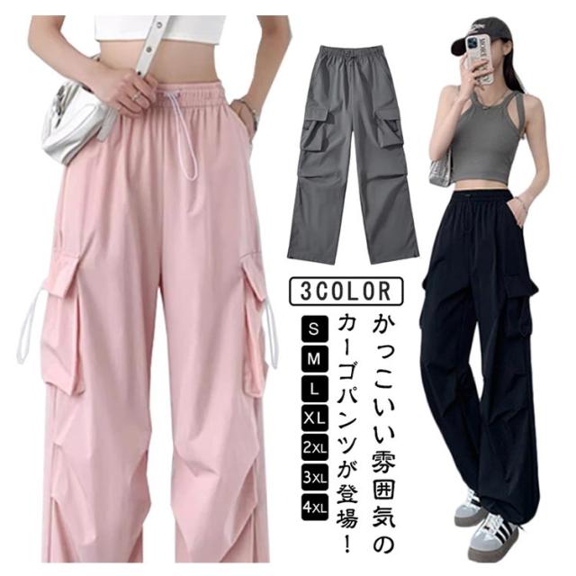 薄手 カーゴパンツ ボトムス ワイド 無地 通勤 シンプル 夏 動きやすい カーゴパンツ ロングパンツ 春 レディース ウエストゴム ダンス用 ズボン 女性用 秋 普段着 かっこいい ゆったり 20代 30代 プレゼント ギフト 贈り物 おしゃれ