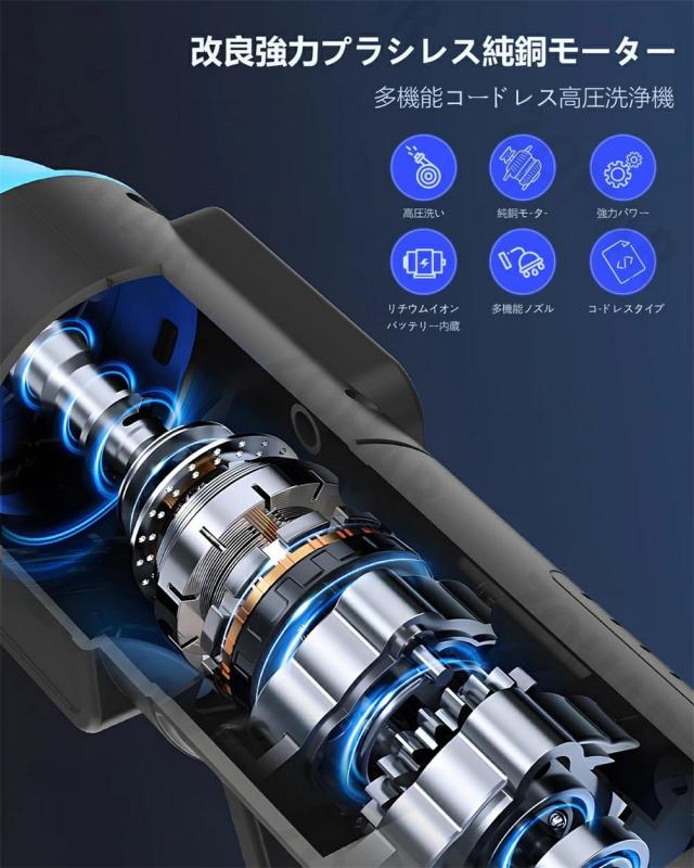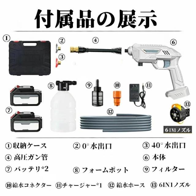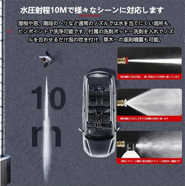 【バッテリー付き】高圧洗浄機 充電式 コードレス 日常吐出圧力60bar 洗車 コンパクト コードレス高圧洗浄機 大容量バッテリー 家庭用 低騒音 各種セット付き 車 洗浄機 洗車機 外壁 ベランダ 収納ボックス 軽量