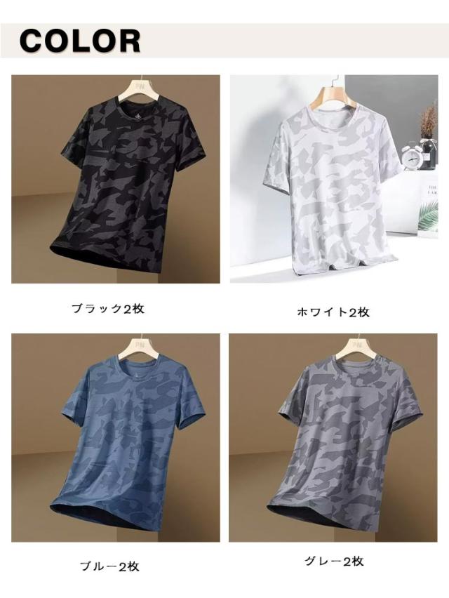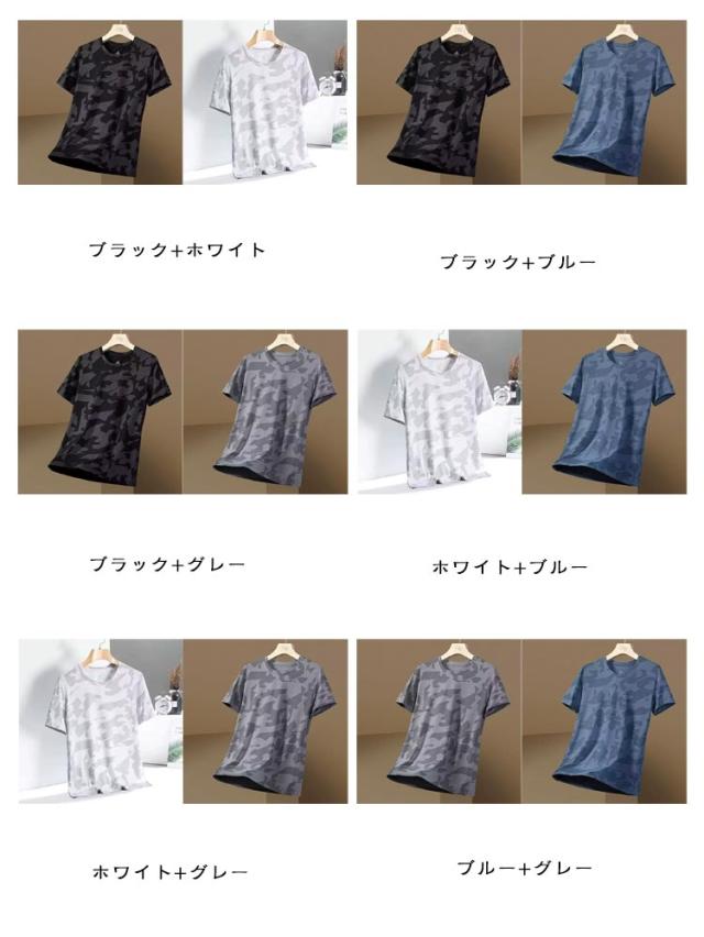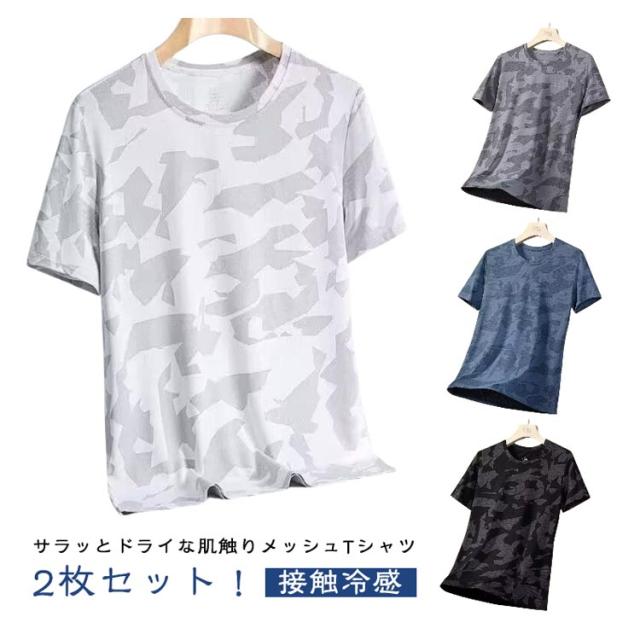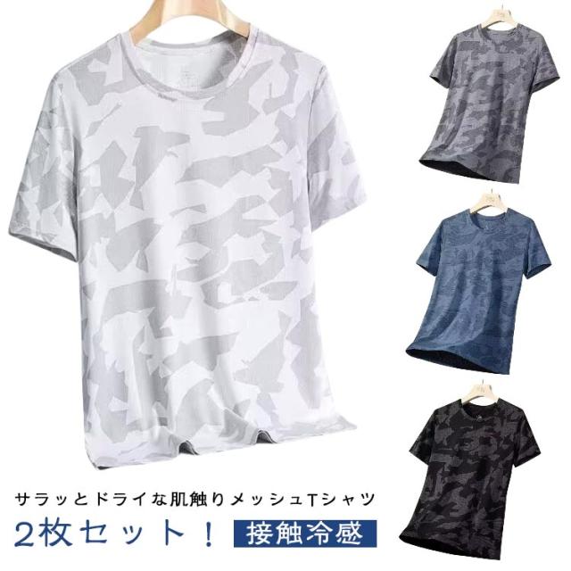 涼しい 男女兼用 トップス 半袖 半袖tシャツ 接触冷感 吸汗速乾 スポーツ 2枚セット! 迷彩 クルーネック 2枚セット! 夏用 メンズ レディース Tシャツ メッシュ ストレッチ 通気性 アイスシルク ゴルフインナー スポーツ 作業服 作業着 ランニング カジュアル
