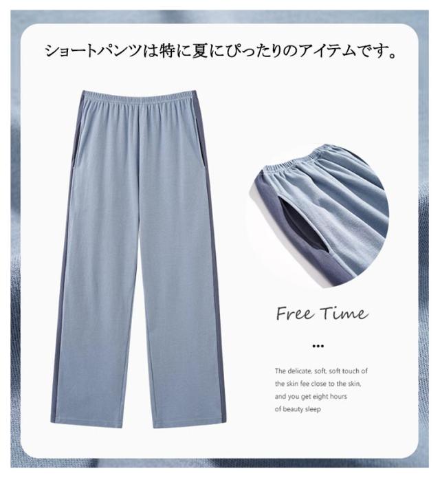 | 男性用と女性用のルームパンツ 薄手で軽くさらっと履ける 肌になめらかでやさしいはき心地 長パンツとショートパンツの2種類からお選びいただけるので、 季節や用途に合わせてお使いいただけます。 シンプルで上品なデザインが、 おしゃれなルームウェアとして最適です。 ショートパンツは特に夏にぴったりのアイテムです。 涼しく軽やかな着心地が特徴で、 熱い季節でも快適に過ごすことができます。 | |
