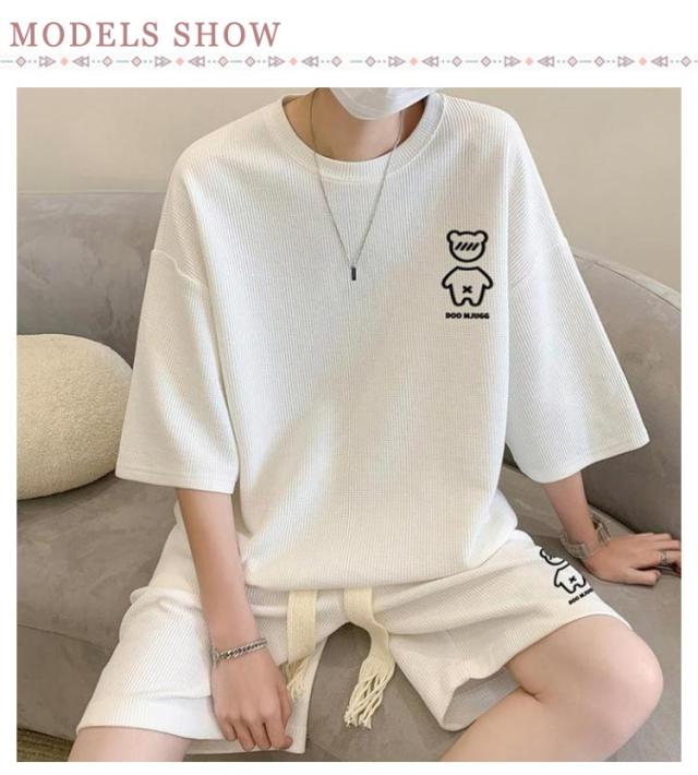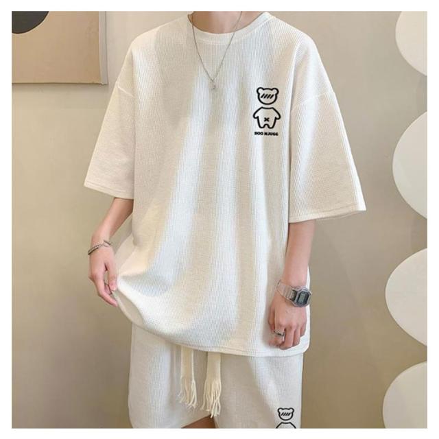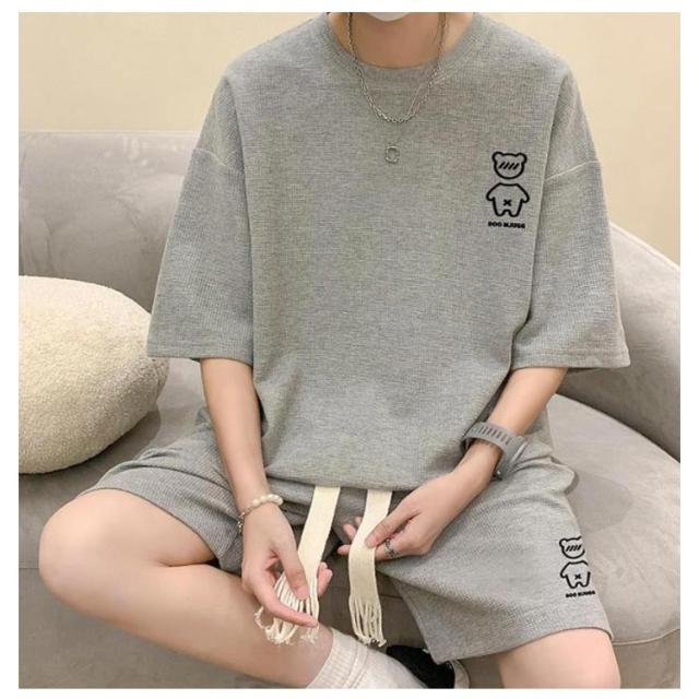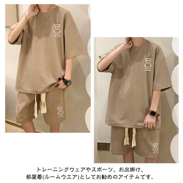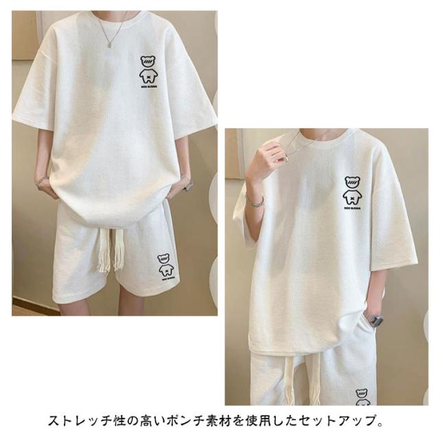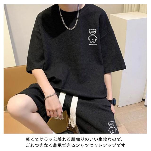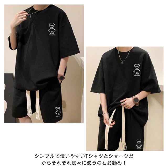 送料無料 上下セット メンズ サマースーツ ハーフパンツ ショートパンツ セットアップ ゆったり セットアップ カジュアル ガウチョパンツ 半袖Tシャツ ワイドパンツ ワッフル編み 通気性 スポーツウェア ルームウェア お兄系 ショーツ 春 夏用 ランニング ウォーキング