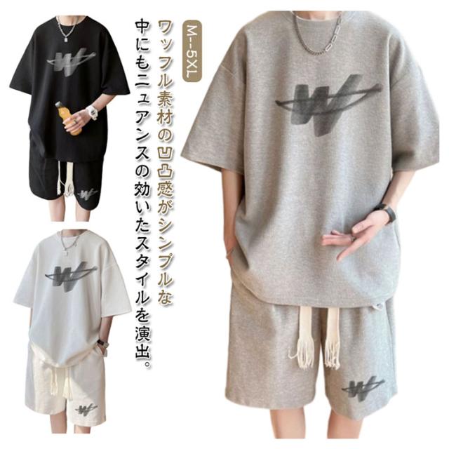 メンズ 上下セット ショートパンツ 通気性 セットアップ ショーツ サマースーツ ワッフル編み カジュアル セットアップ ガウチョパンツ 送料無料 ワイドパンツ ゆったり ハーフパンツ スポーツウェア ルームウェア お兄系 パジャマ 春 夏用 ランニング ウォーキング