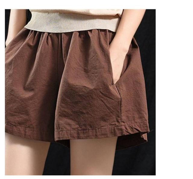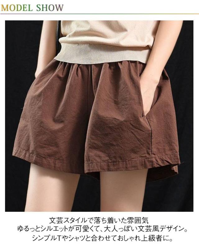 ショートパンツ コットン ショートパンツ レディース 文芸風 ゆったり 大きいサイズ ワイドパンツ ウエストゴム 夏用 パンツ 涼しい ズボン 6色展開
