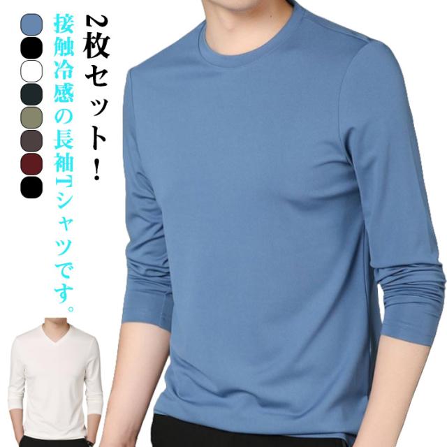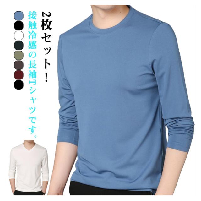 長袖 長袖tシャツ 冷感インナー アイスシルク Vネック Tシャツ 薄手 接触冷感 トップス 2枚セット 2枚セット 春夏 作業服 ストレッチ 吸水速乾 丸首 tシャツ 釣り 涼しい 作業着 トレーニングウェア ゴルフ 野球 大きいサイズ バイク