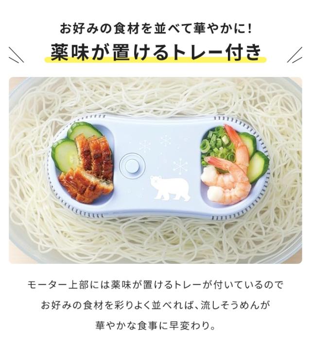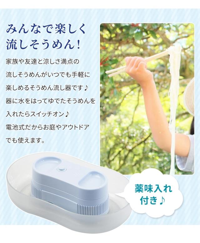 | ・家庭用そうめん流し器 1〜2人用 ・どこでも使える電池式(別売)なので持ち運び可能 ・上部には薬味が置けて便利 |