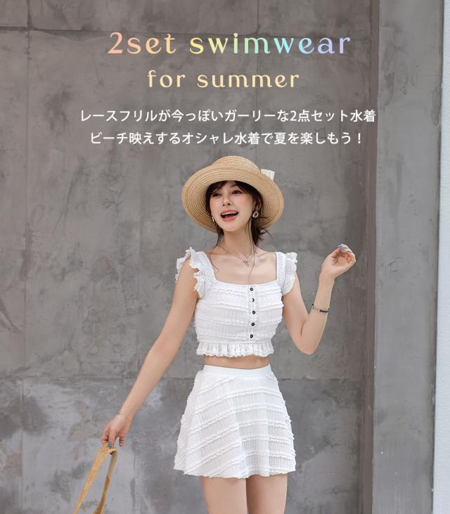 レースフリルが今っぽいガーリーな2点セット水着