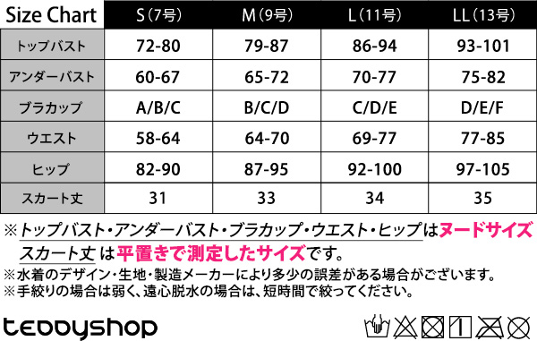 ※トップバスト・アンダーバスト・ブラカップ・ウエスト・ヒップはヌードサイズ、