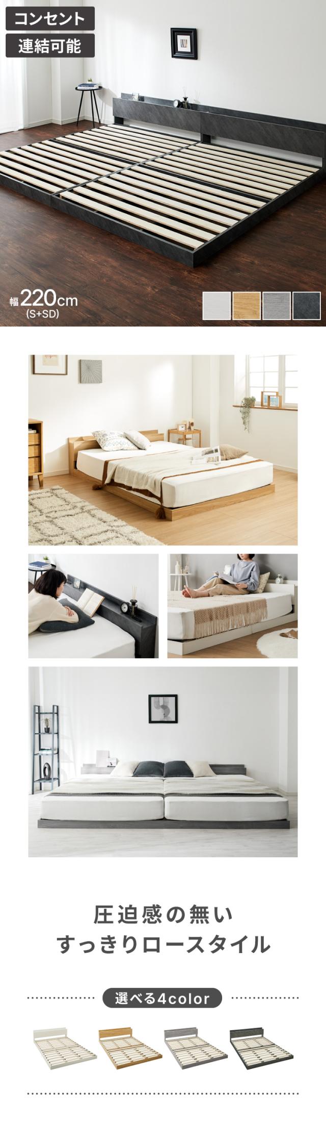 ファミリーベッド フロアベッド ワイドキング220(S+SD) ベッド ベッドフレーム 2口コンセント付き 連結ベッド すのこベッド 宮棚 ロータイプベッド フラット式 フレームのみ ローベッド(代引不可)【送料無料】