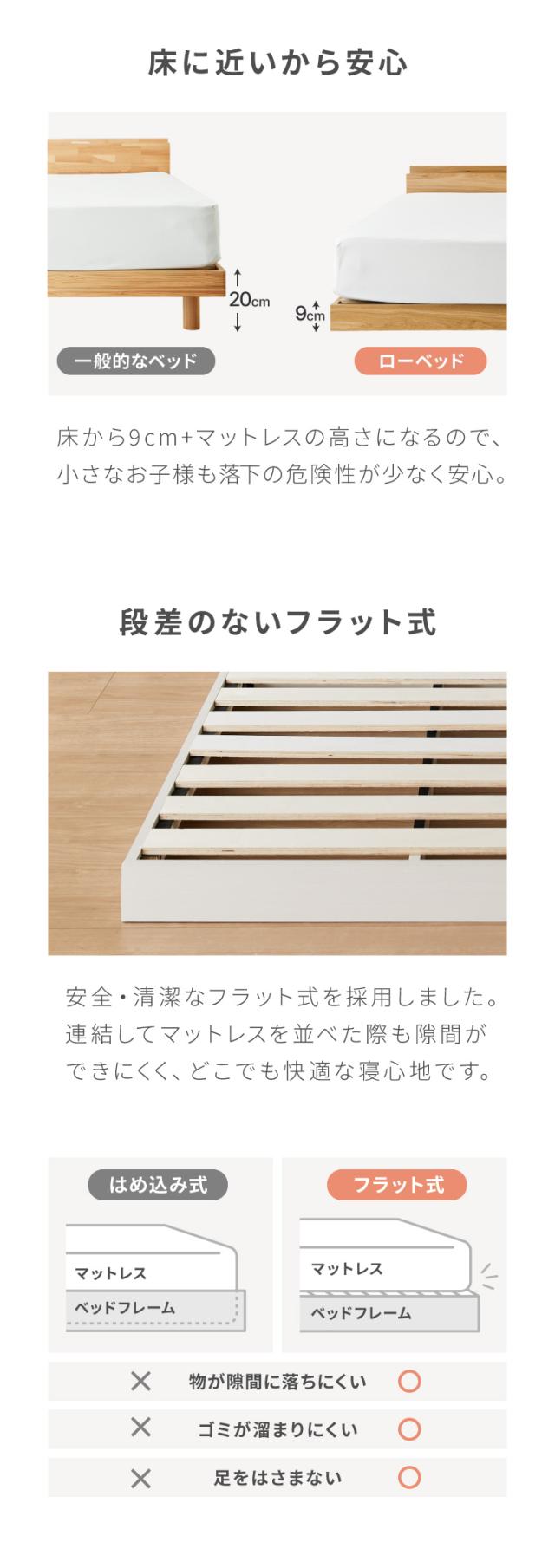 ・フレームとすのこに段差がないので、すき間がなくつなげられます。