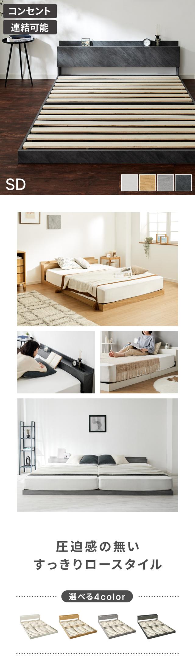 連結金具付き フロアベッド ローベッド セミダブル ベッド ベッドフレーム 2口コンセント付き 連結ベッド すのこベッド 宮棚 ロータイプベッド フラット式 フレーム単品 一人暮らし ファミリー【送料無料】